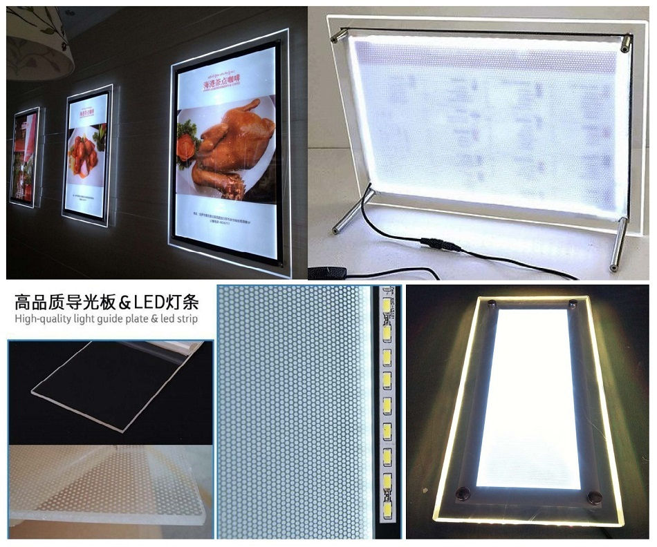 | SKU: APS-01/APS-02 Material: Acrylic Thickness: 2mm,3mm,4mm,5mm LED: With/Without LED Size: A1/ A2/ A3/ A4/ A5 Colour: Transparent MOQ: 100pcs Packing: 10~50pcs/ctn Life Time: 1 Year+ | |||||||||