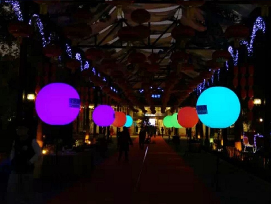 Ball material: 600gsm pvc with heat pressing seal,with led light inside. It can be lasting 72~96hours after pumping air.