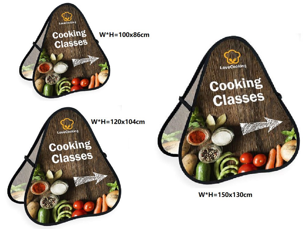 | SKU: POB-5 Material: Steel strap+Polyester fabric Print: Digital print Sewing: 2 Stitches all around Size: 100x86/120x104/150x120cm MOQ: 1pc Packing: Each in oxford carrybag, 5pcs/Carton Life Time: 1 Year+ Fabric Options: Standard: 150GSM Tension fabric polyester Premium: 250GSM Tension fabric polyester Accessories: Pegs,oxford carrybag | |||||||||